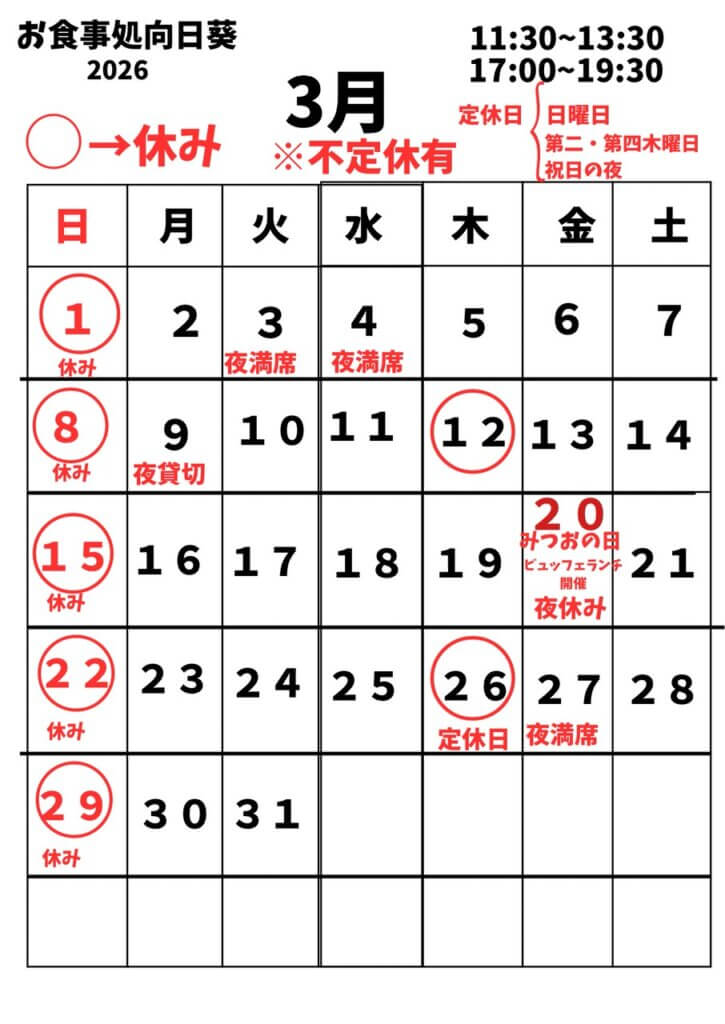 それでは3月の営業日をお知らせいたします!